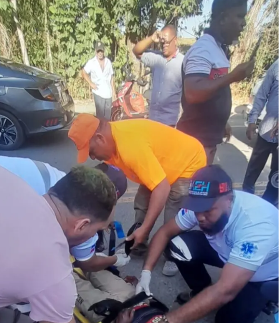 Vásquez recibió asistencia de brigadistas de la Defensa Civil que acudieron al lugar y luego fue enviado al hospital público de Cotuí, donde recibió asistencia médica.