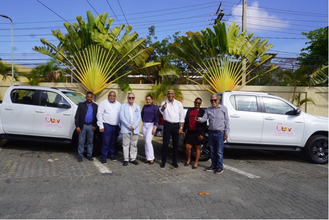 Santo Domingo.- Con la entrega de dos camionetas y tres motocicletas, la Universidad Nacional Evangélica (UNEV) continúa fortaleciendo las actividades de siembra sana, que se enmarca en el proyecto de agricultura orgánica y agroecológica en las comunidades de Pedernales: Juancho, Oviedo, Los Olivares, municipio Pedernales, Las Tres Hermanas; Mencía, La Altagracia, Aguas Negras y Los Arroyos.